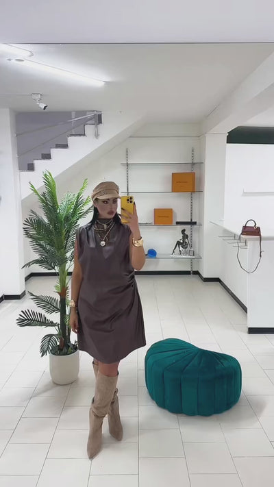 Abito in ecopelle marrone