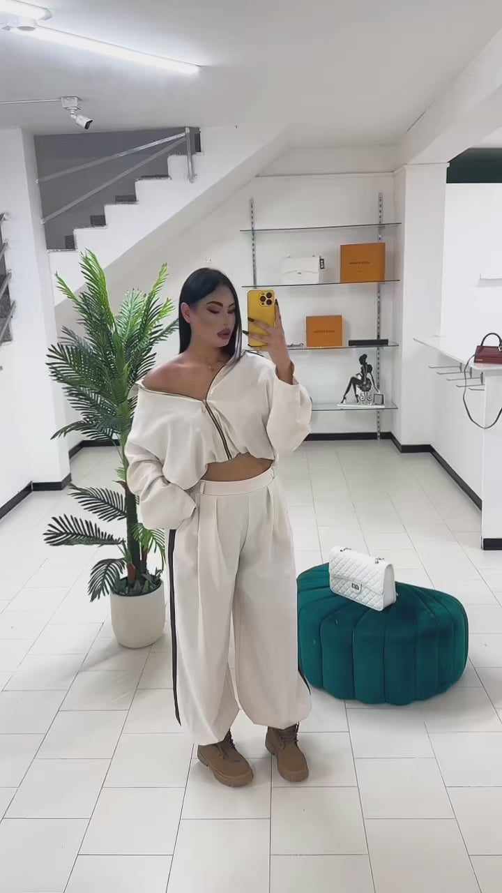 Il coordinato è taglia unica e ha una vestibilità dalla 48 alla 56